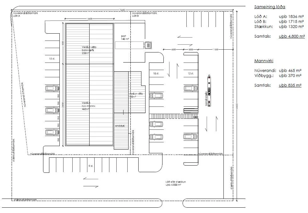 Húsnæðið stækkar úr 465 m2 í 835 m2 og bílastæðum fjölgar mikið.