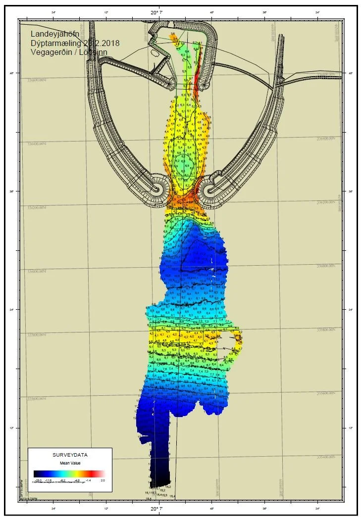 Niðurstaða dýptarmælingar við Landeyjahöfn