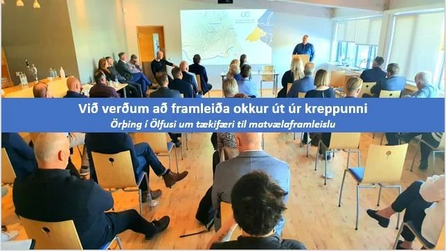 Í gær fór fram örþing í Ölfusi undir nafninu „Matvælaframleiðsla á krossgötum“. Þar kynntu forsvarsmenn matvælafyrirtækja í Ölfusi stöðu sinna fyrirtækja og vörpuðu ljósi á þau miklu tækifæri sem Ísland á, þegar kemur að matvælaframleiðslu. Með framtakinu vilja Sveitarfélagið Ölfus og Þekkingarsetur Ölfus horfa til þess að matvælaframleiðsla verði nýtt sem ein helsta leiðin út úr þeirri kreppu sem fylgir COVID faraldrinum.