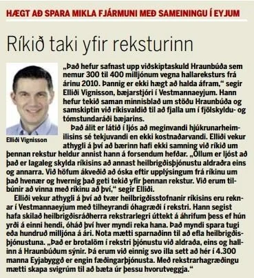 Í morgunblaðinu í dag er fjallað um heilbrigðisþjónustu við aldraða og meðal annars komið inn á stöðu heilbrigðismála í Vestmannaeyjum. Hér er það skýr krafa okkar sinni sinni lögbundnu þjónustu við aldraða og bæti mikið þjónustu við verðandi mæður.